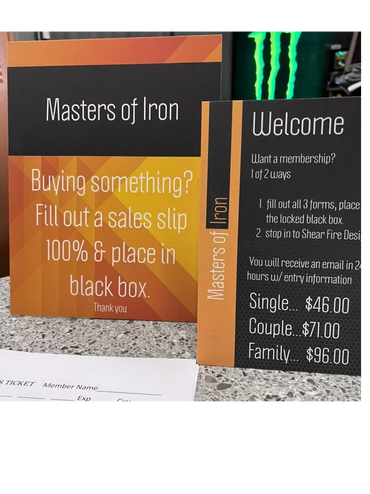 Fill out a sales slip and place in the black box on the side of the counter.